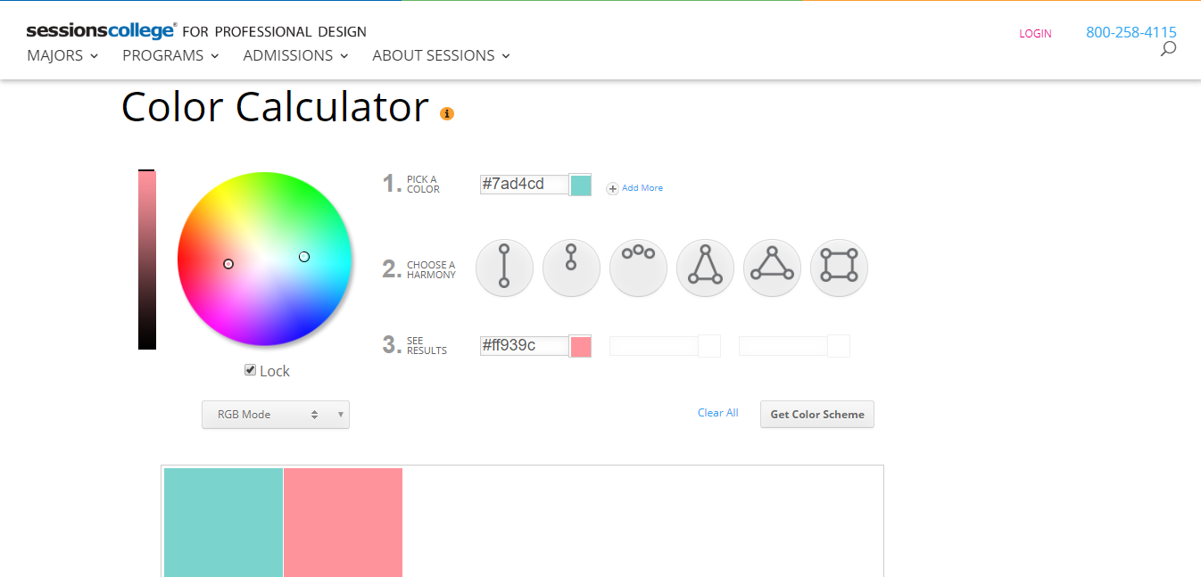You can use a very useful tool called Color Calculator here to help you choose the color scheme easily. You just need to choose a primary color in the Pick a color section and choose the color scheme in the Choose a harmony part. The corresponding color in the chosen scheme will show up in the See results part.